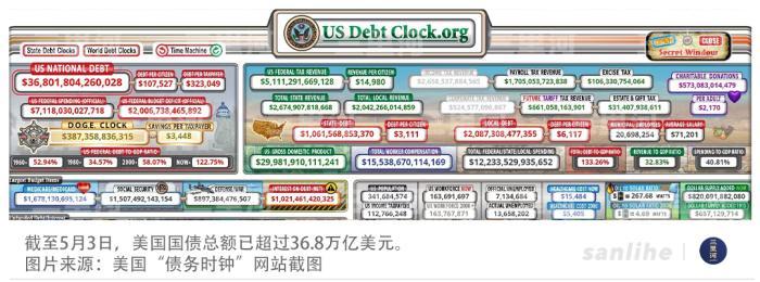 “债务时钟令人恐惧。”美国“政府效率部”负责人马斯克曾直言。他所说的,是美国“债务时钟”网站显示的统计数据。目前,美国国债总额已超过36.8万亿美元。